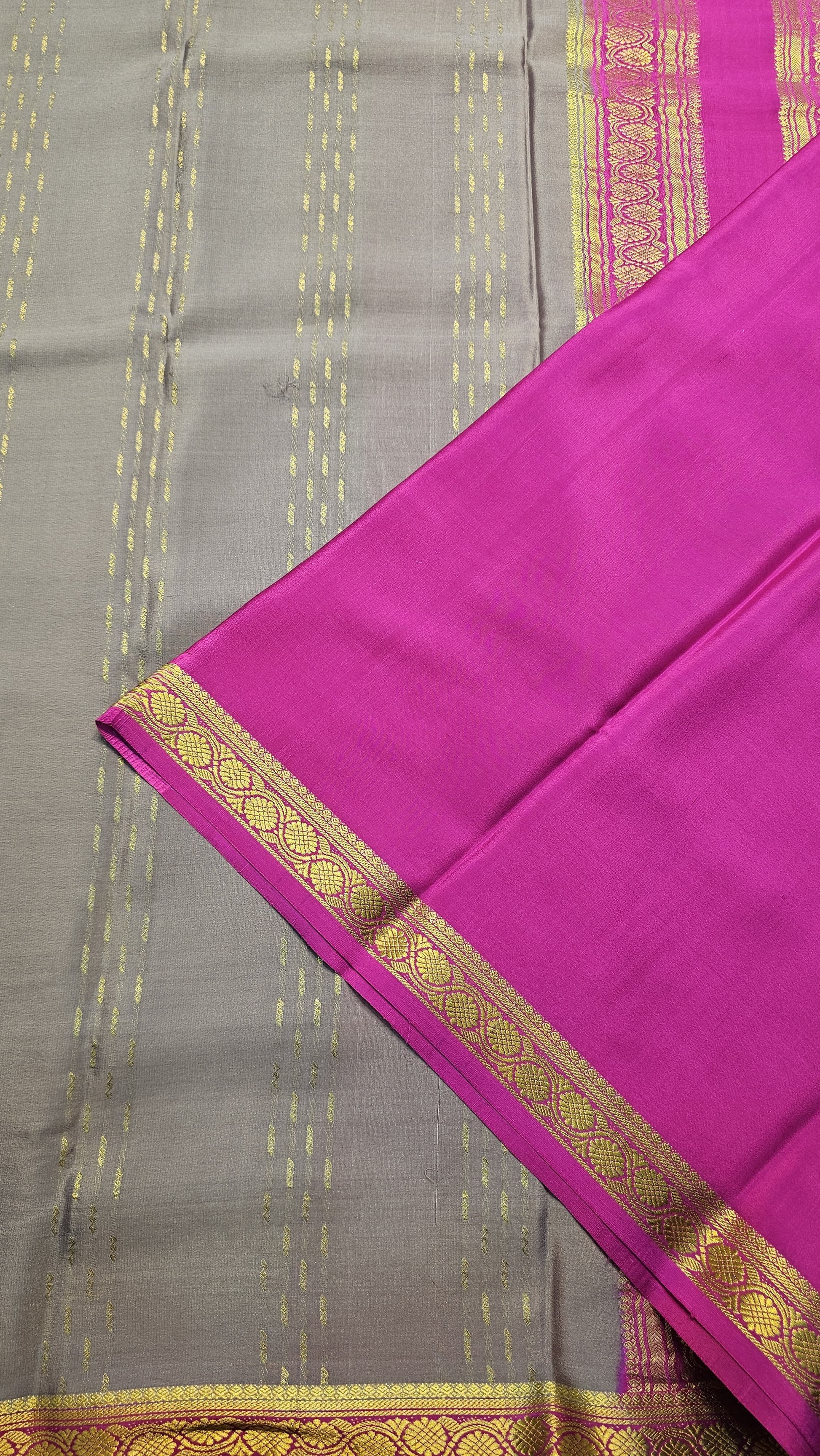 Mysore crepe silk saree with KSIC Finish in kiwi with rani pink in brocade zari pattern