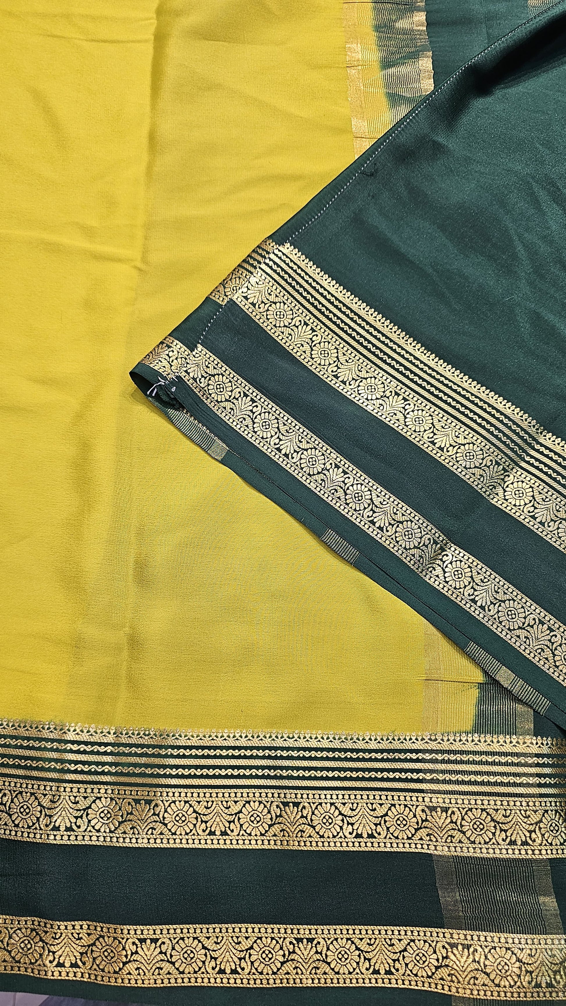 Mysore Crepe Silk Sarees in KSIC Finish in lemon green with bottle green in bentex border