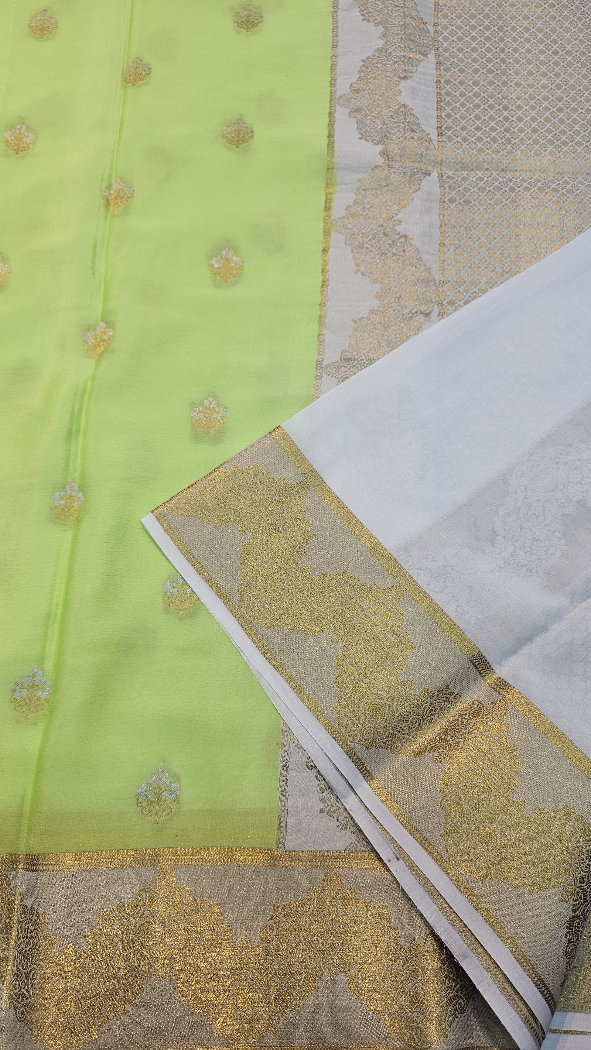 Mysore Crepe Silk Sarees in KSIC Finish in redium green with half white tissue border